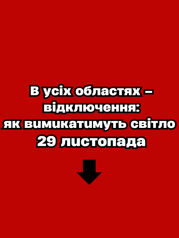 У суботу, 29 листопада, по всій Україні діятимуть цілодобові погодинні відключення електроенергії — це вимушений крок через масштабні російські атаки на енергетичну інфраструктуру, які серйозно пошкодили майже всі теплові та гідроелектростанції країни.