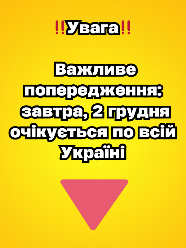 За даними Укргідрометцентру та синоптикині Наталки Діденко, 2 грудня по всій країні буде хмарно, волого, місцями пройдуть невеликі дощі, а в Карпатах можливий мокрий сніг. Вночі та в першій половині дня більшість областей накриє туман, що разом із мокрою поверхнею створить додаткову небезпеку для водіїв. Через це на 1 та 2 грудня оголошено жовтий рівень небезпеки.