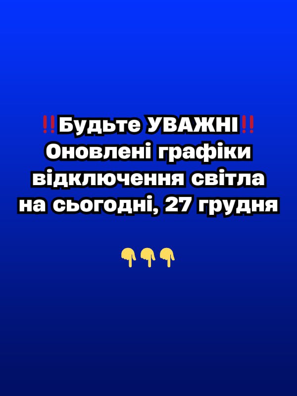 Уже цієї суботи, 27 грудня, мешканці Києва, Київської та Дніпропетровської областей знову зіткнуться з плановими відключеннями електроенергії — ДТЕК оприлюднив оновлені графіки, які суттєво різняться залежно від району. Це важливо знати кожному: тривалість перебоїв може сягати від 6 до понад 10 годин на добу, а графіки можуть змінюватися навіть протягом дня.