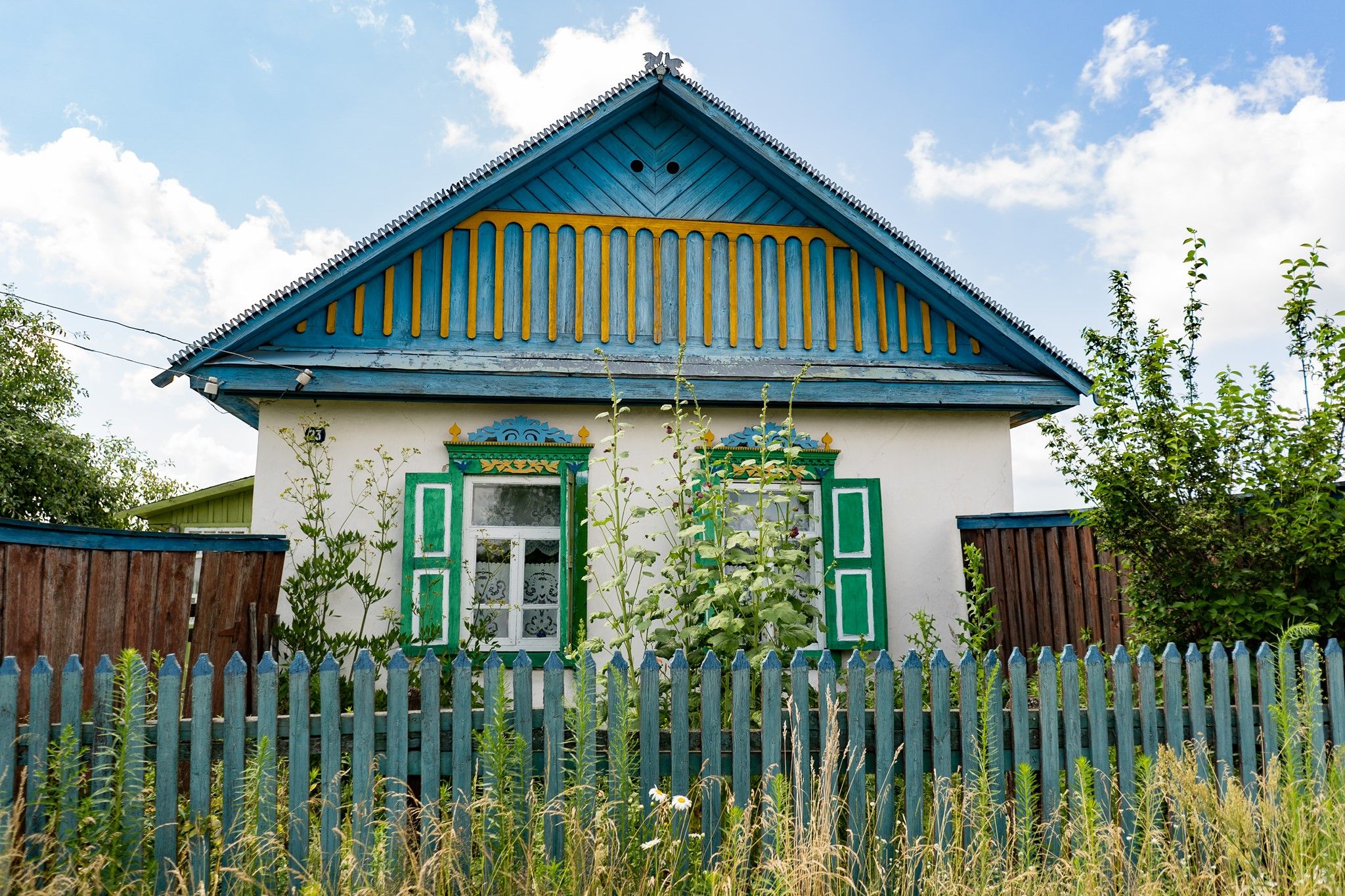 У сусідів так гарно розцвіли жоржини. А ось на її подвір’ї красувалася калина, яку ще колись дідусь посадив.