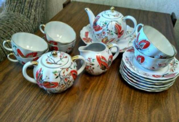 Я спеціально для гостей дістала красивий сервіз, який ще покійна бабуся порадувала. З орнаментом, на ньому намальовані червоні квіти, ще із золотою стрічечкою на верху. До слова, цей сервіз я берегла, як зіницю ока. Ще й так обережно заставила їх ватою та газеткою, щоб не розбилися. Діставала з сервантну тільки на особливі випадки життя.